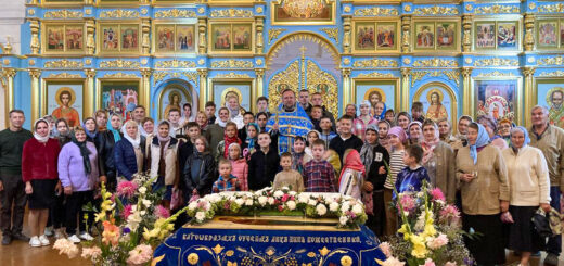 По окончании Божественной литургии вокруг собора прошел крестный ход, после которого отец настоятель поздравил прихожан с праздником Успения Божией Матери.